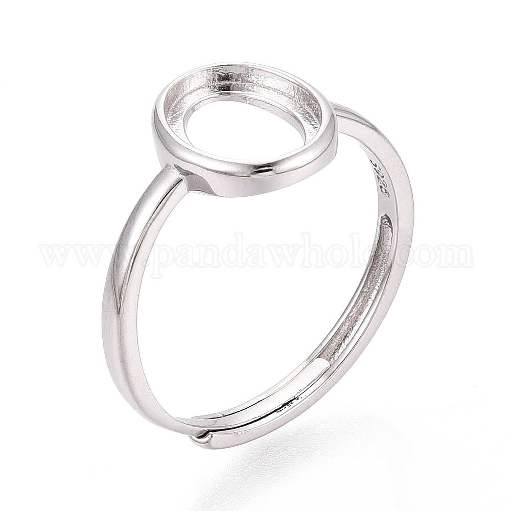 Регулируемые 925 заготовки для овальных колец из стерлингового серебра с оправой, Открытая задняя часть лотков для колец