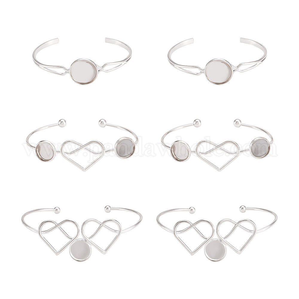 4шт 2 стиль латунь и 2шт железо изготовление браслетов-манжет, открытый браслет сердце с пустой основой браслета