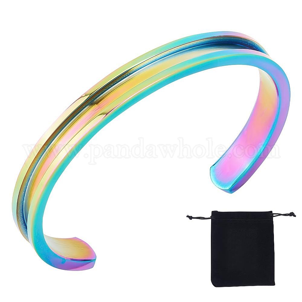1ПК 304 браслеты из нержавеющей стали с рифлением, манжеты браслет, для драгоценных камней, изготовление кожаных браслетов с инкрустациями, с бархатным мешочком из поликарбоната