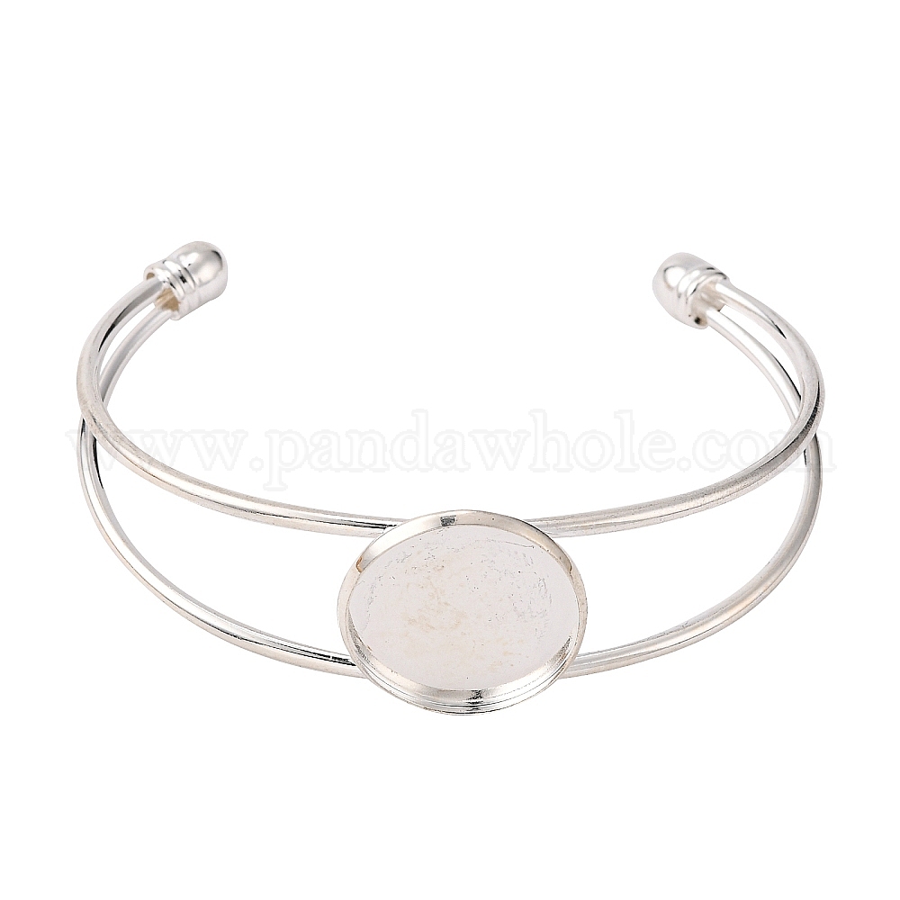 Латунь манжеты браслет решений, пустое основание браслета, с плоской круглой лоток, 63 мм, лоток : 20 мм
