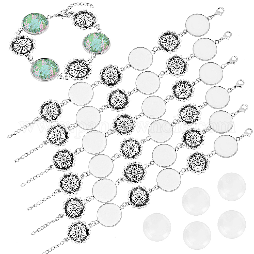 • Античное Серебро 10шт. изготовление браслета-соединителя с цветком, с 304 соединителем из нержавеющей стали и сплава в тибетском стиле, украшенным стразами, Прозрачные стеклянные кабошоны, античное серебро, 7-5/8 дюйм (19.5 см)