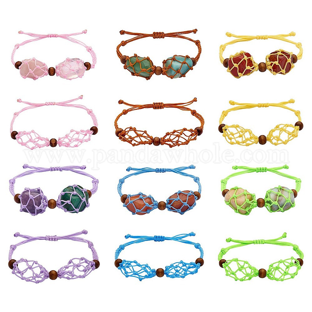 12шт регулируемый плетеный нейлоновый шнур макраме мешочек изготовление браслета, взаимозаменяемые 2 камни, с бусинами из натурального дерева