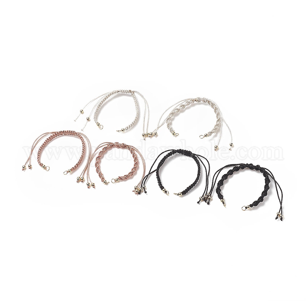 2шт 2 плетеные браслеты из полиэфирного шнура, для изготовления браслета с регулируемым звеном, с латунной бисера (02GRFR)