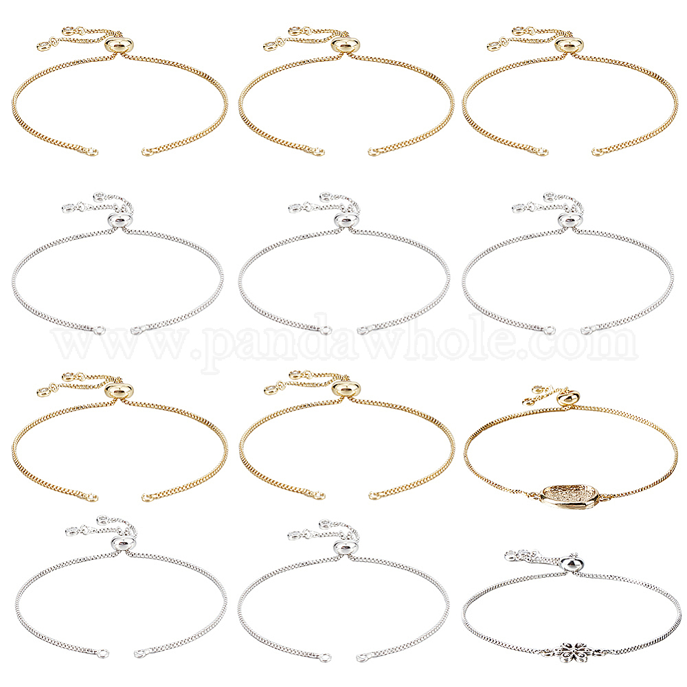 10шт 2 цвета латунные слайдер браслеты изготовление, с кубического циркония, браслет с цепочками, долговечный