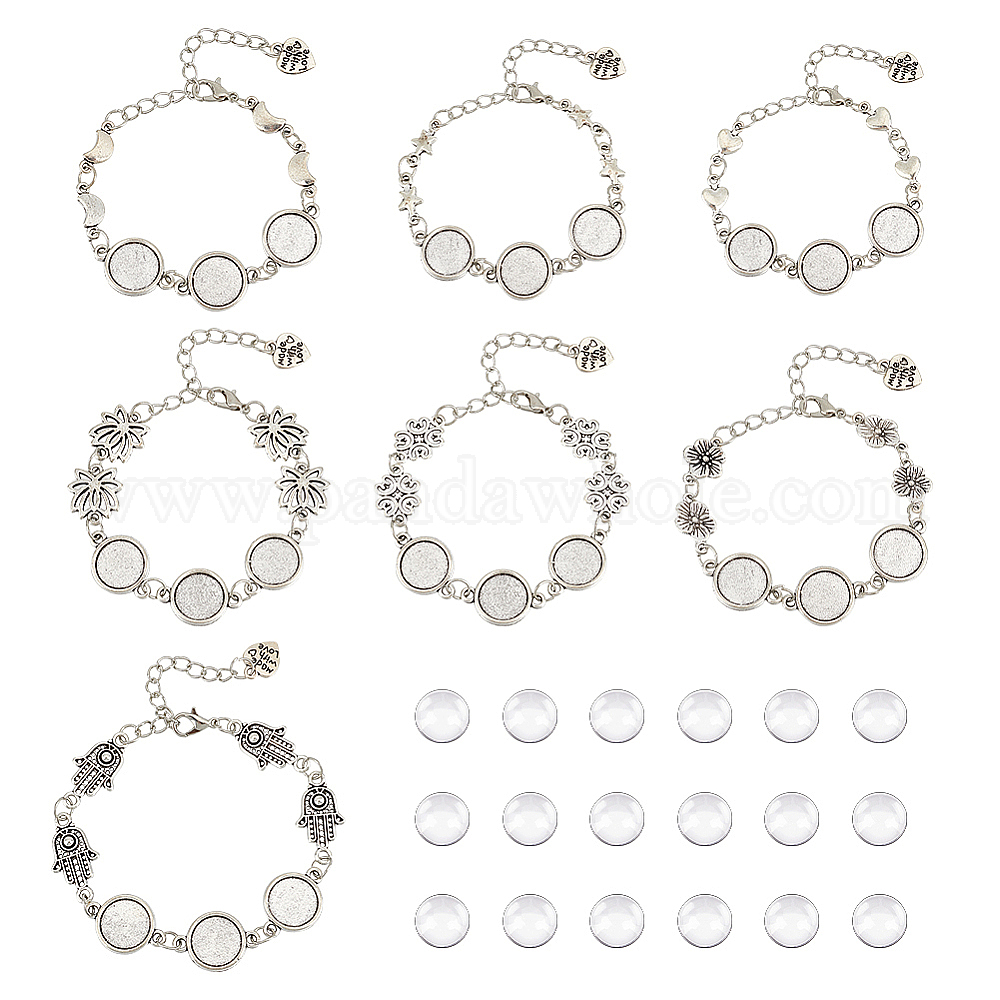 7шт 7 стили сплав браслеты и ножные браслеты изготовление, браслет хамса рука/сердце/цветок, пустая оправа кабошон, с 20 стеклянными кабошонами