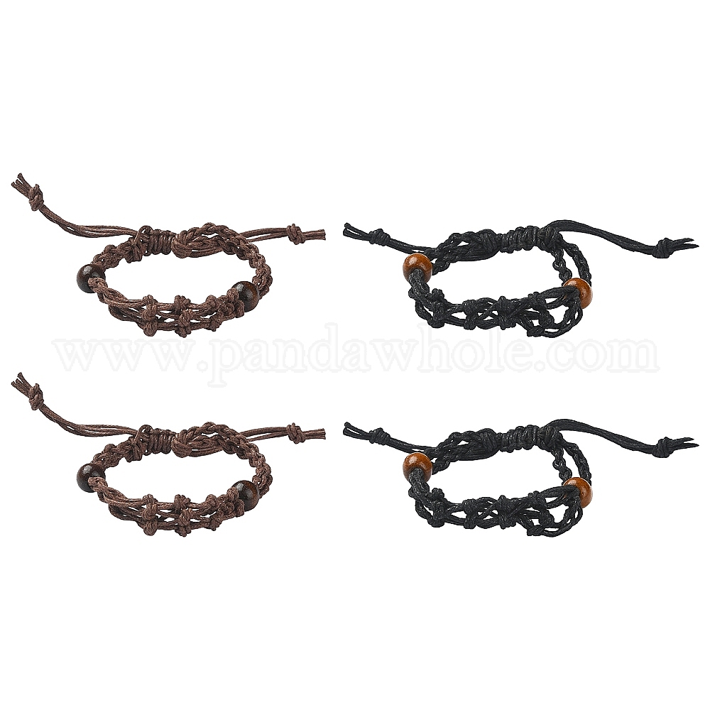 4 шт. 2 цвета, вощеный хлопок, мешочек для макраме, пустой держатель для камней для изготовления браслетов с звеньями, с деревянными бусинами