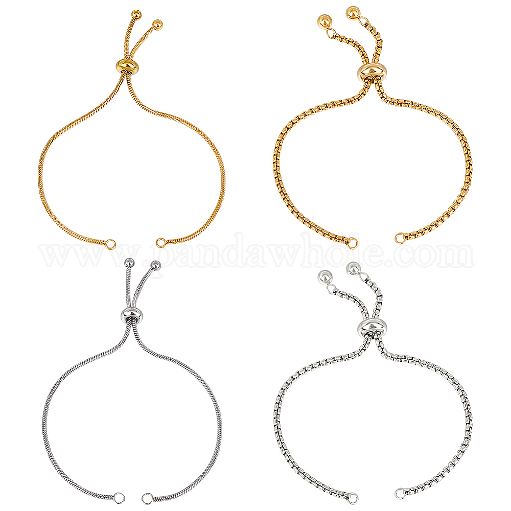 4 шт. 4 стиль регулируемый 304 слайдер из нержавеющей стали браслет/браслеты боло изготовление, браслет-цепочка в форме змеи, подходит для соединительных шармов