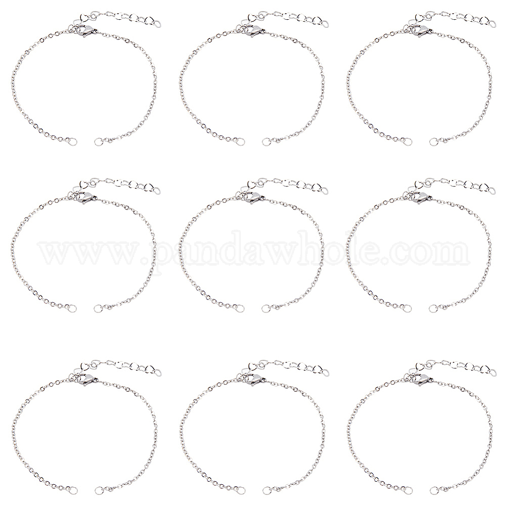 20шт 304 изготовление браслета из нержавеющей стали, с застежками в виде когтей лобстера и удлинительной цепочкой в форме сердца, подходит для соединительных подвесок