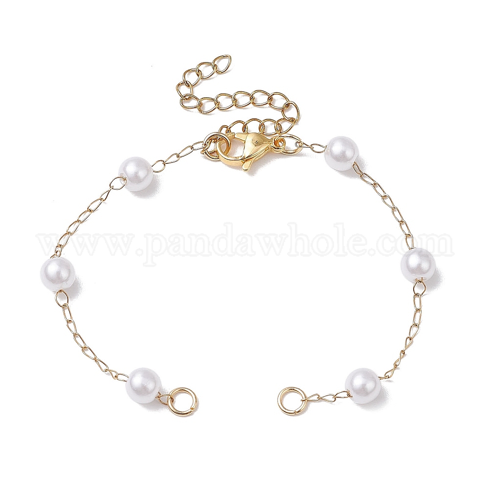 • Золотой Круглый искусственный жемчуг из АБС-пластика изготовление браслета из звеньевой цепи, 304 браслеты из нержавеющей стали с соединительным кольцом, золотые, 6-5/8 дюйм (16.8 см)