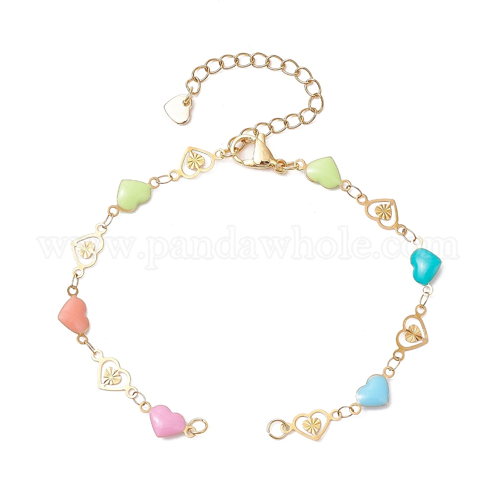 304 изготовление браслета-цепочки в форме сердца из нержавеющей стали с цветной эмалью