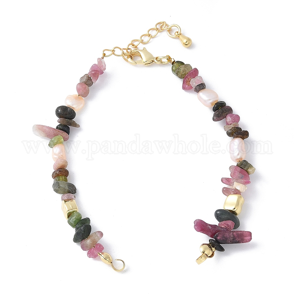Изготовление браслета из бисера с латунной и натуральной жемчужиной и турмалиновой крошкой, с латунным когтя омара застежками и удлинителей цепей, стойки покрытие, долговечный, без кадмия и без свинца