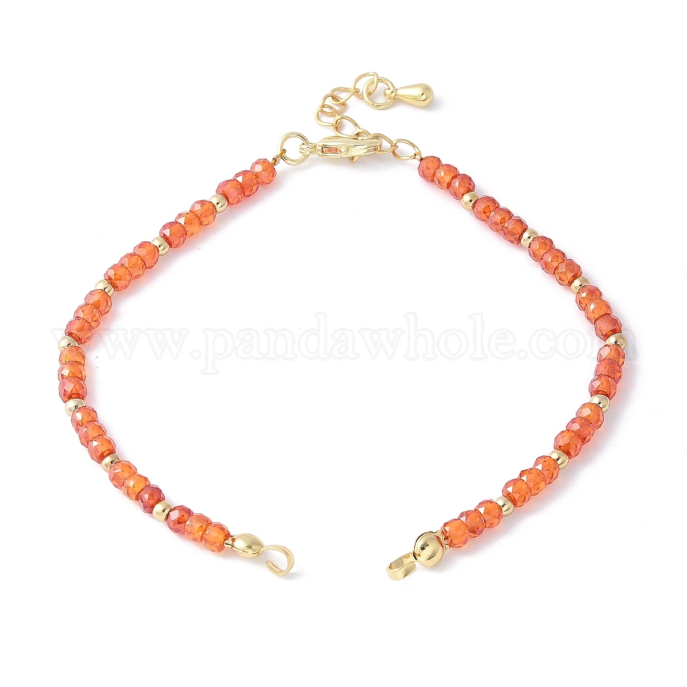 Изготовление браслета из граненых бусин кубического циркония в форме ронделя, коралл, с латунным когтя омара застежками и удлинителей цепей, стойки покрытие, долговечный, без кадмия и без свинца