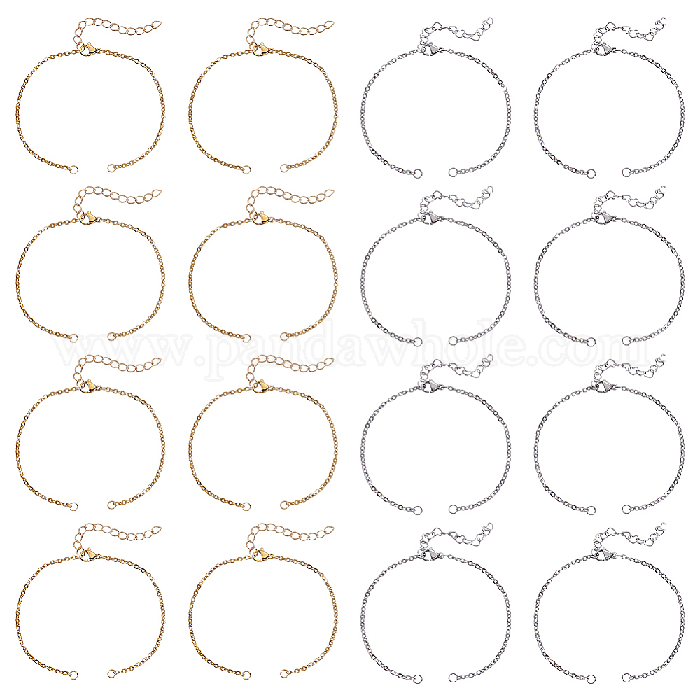 32 шт. 2 цвета 304 изготовление браслета-цепочки из нержавеющей стали, с застежками в виде когтей лобстера и удлинительной цепочкой в форме сердца
