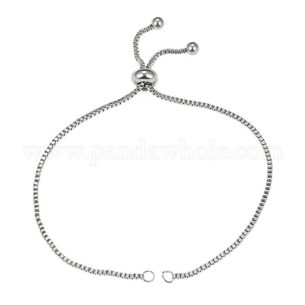• Нержавеющая Сталь Цвет Устойчивые к потускнению регулируемые 304 слайдер браслеты из нержавеющей стали изготовление, Боло браслеты, с 202 из нержавеющей стали бусы, цвет нержавеющей стали, длина одной цепи: около 12 см