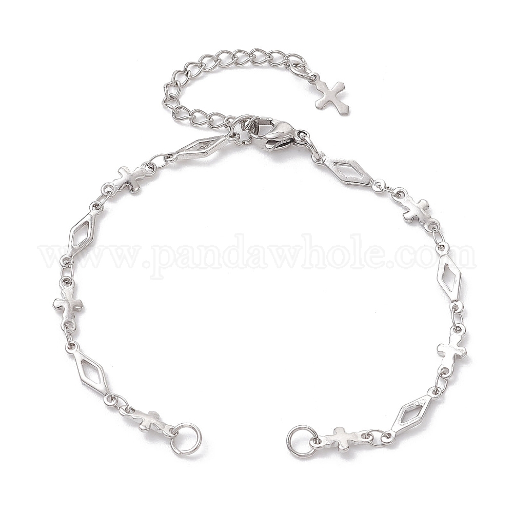 • Нержавеющая Сталь Цвет 304 изготовление браслета из ромбовидной цепи из нержавеющей стали, подходит для соединительных шармов, не тускнеет, цвет нержавеющей стали, 6-3/4 дюйм (17 см), отверстие : 3.5 мм