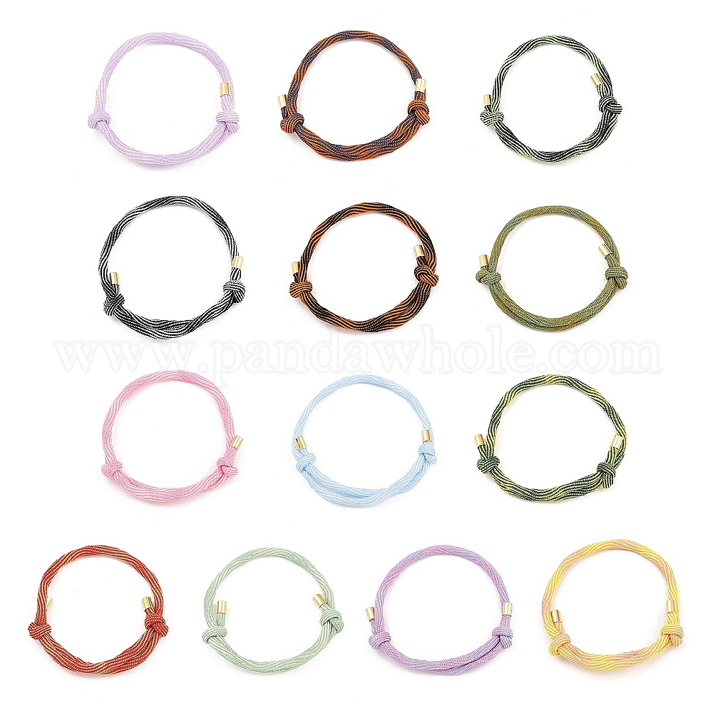 • (52) Непрозрачная лаванда Браслеты из нейлонового шнура, с латунной фурнитурой , золотые, долговечный, стойки покрытие, разноцветные, внутренний диаметр: 1-5/8~3-1/8 дюйм (4~8 см)