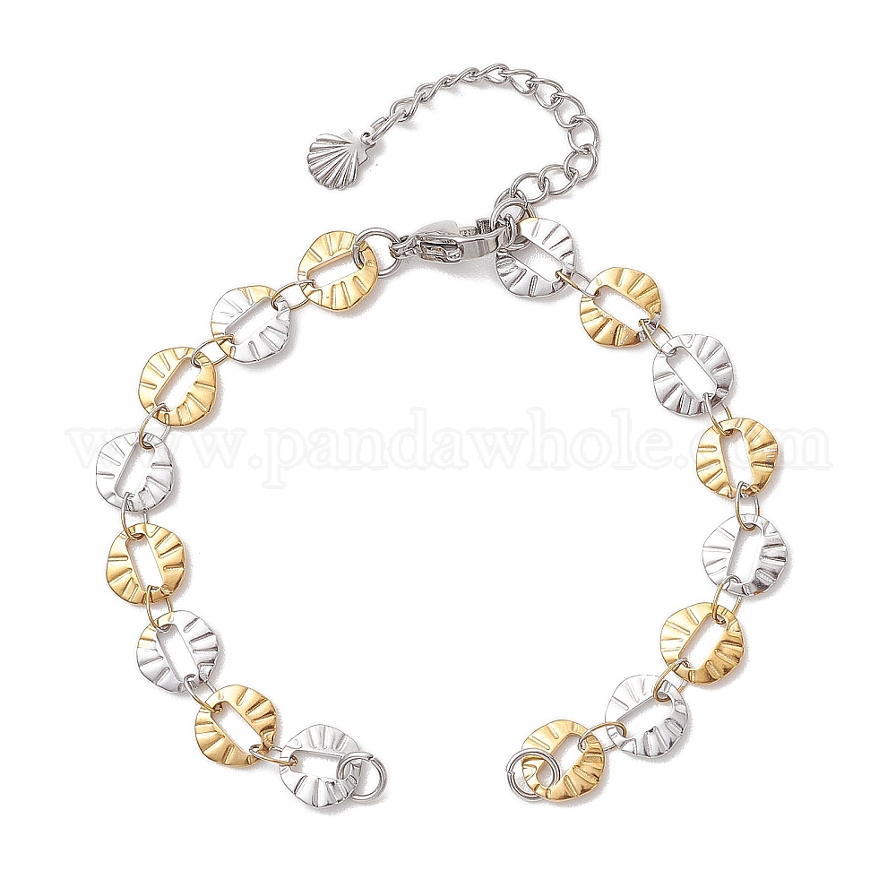 Двухцветный 304 браслет из цепей с текстурированными дисковыми звеньями из нержавеющей стали