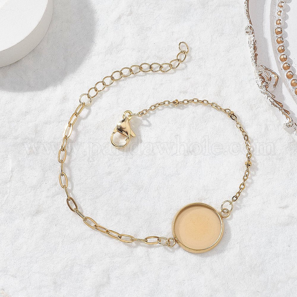• Золотой 304 изготовление браслета-скрепки из нержавеющей стали, с плоскими круглыми 304 кабошонами из нержавеющей стали, золотые, 6.77 дюйм (17.2 см), лоток : 14 мм