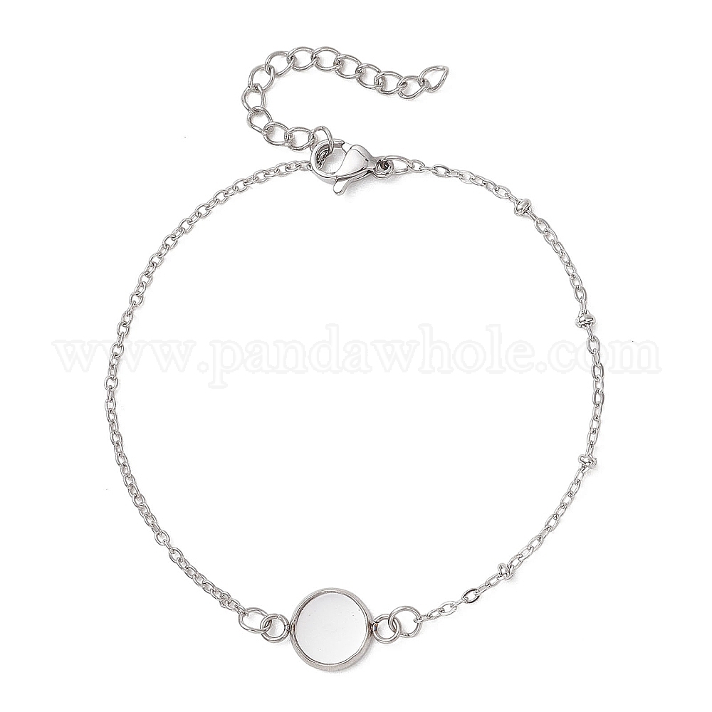 304 изготовление браслетов-спутников из нержавеющей стали, с плоскими круглыми настройками кабошон, не тускнеет