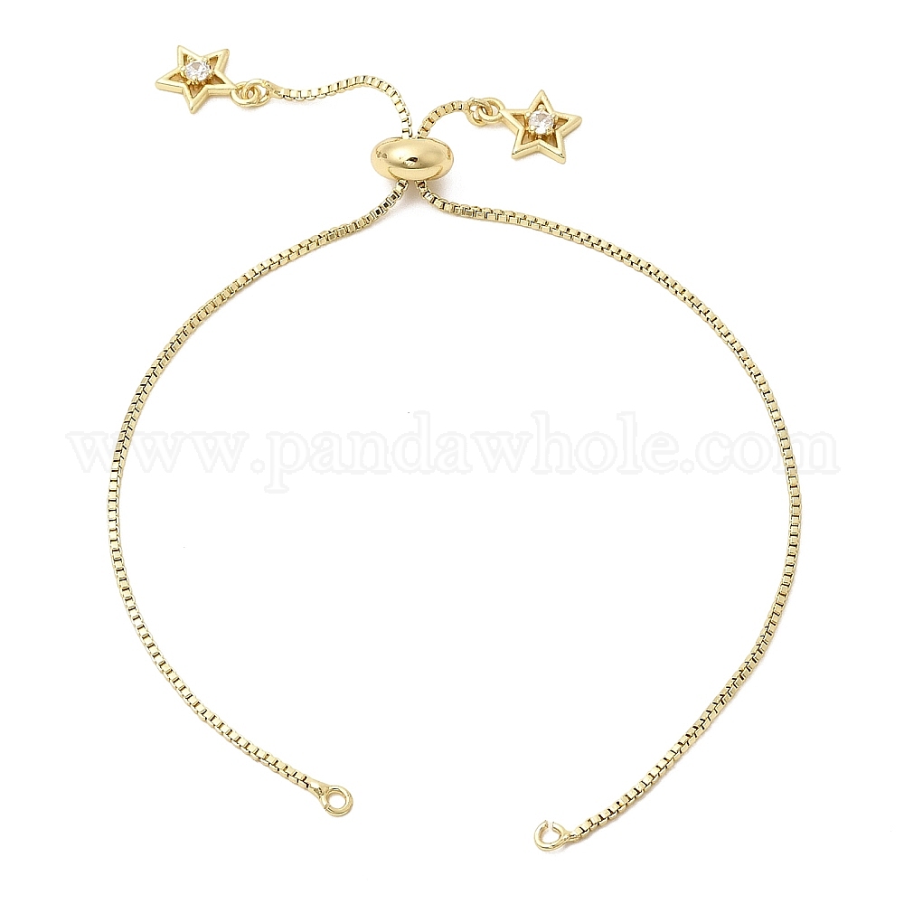 • Настоящее золото 18K 1мм латунная цепочка-слайдер для изготовления браслетов, с прозрачными подвесками в виде звезд кубического циркония, стойки покрытие, долговечный, без свинца и без кадмия, реальный 18 k позолоченный, 9.45 дюйм (24 см), отверстие : 2 мм