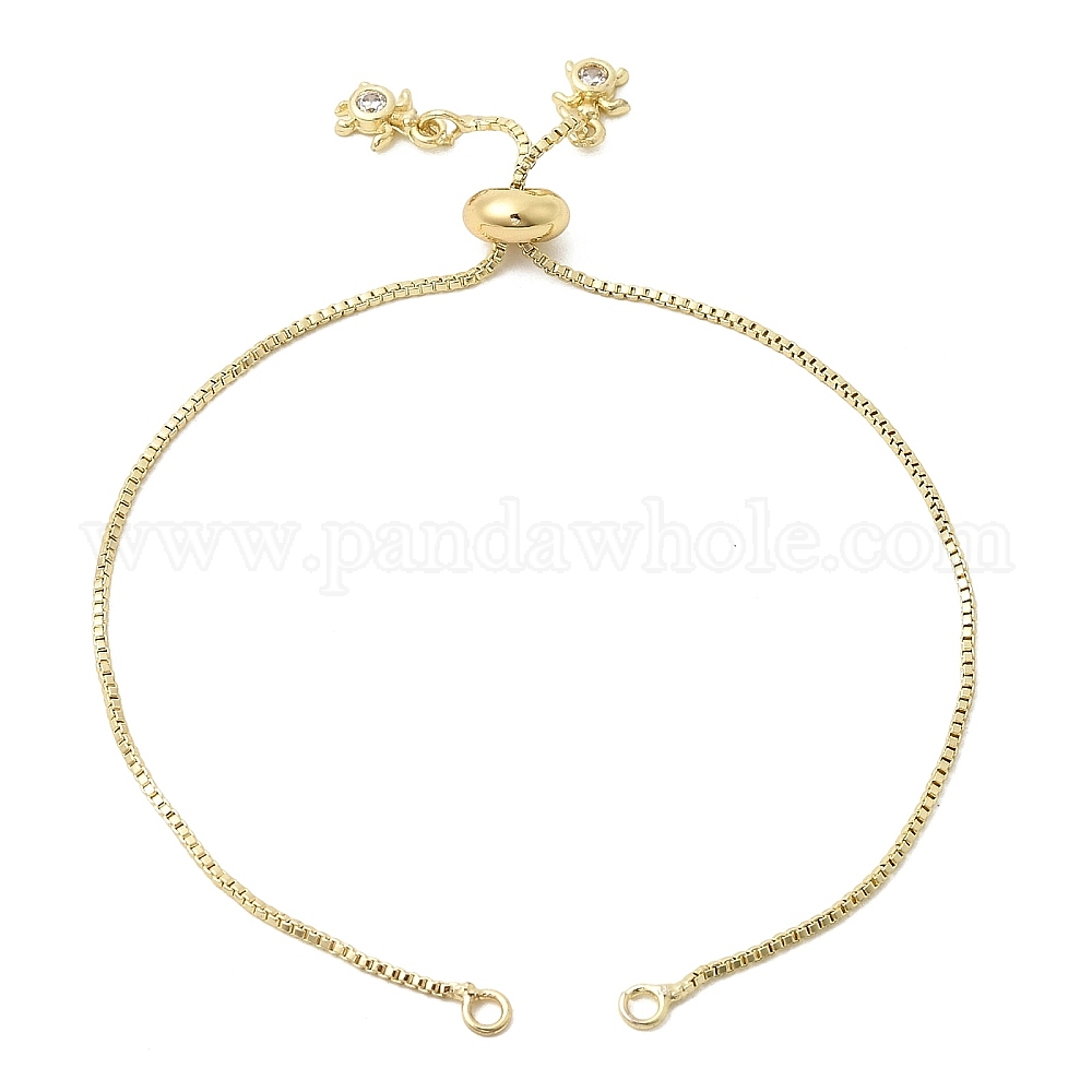 • Настоящее золото 18K 1мм латунная цепочка-слайдер для изготовления браслетов, с прозрачными подвесками в виде черепах из кубического циркония, стойки покрытие, долговечный, без свинца и без кадмия, реальный 18 k позолоченный, 9.45 дюйм (24 см), отверстие : 2 мм
