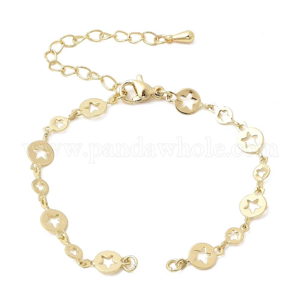 Латунный диск с цепочкой из полых звеньев в форме звезды для изготовления браслета, стойки покрытие, долговечный, без свинца и без кадмия