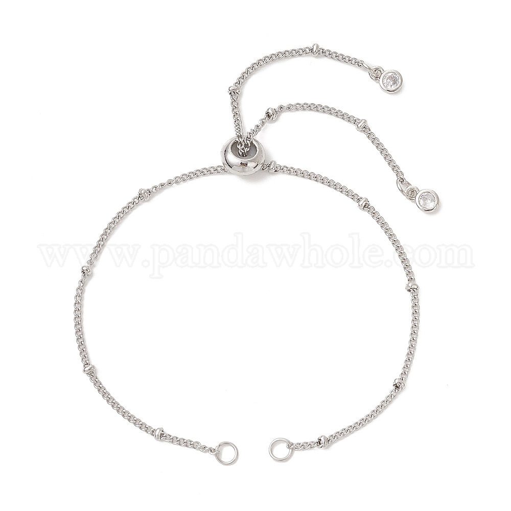 304 Изготовление браслета-слайдера сателлитной цепи из нержавеющей стали, с латунными подвесками из прозрачных плоских круглых кубических цирконий, инкрустированными прозрачными кристаллами