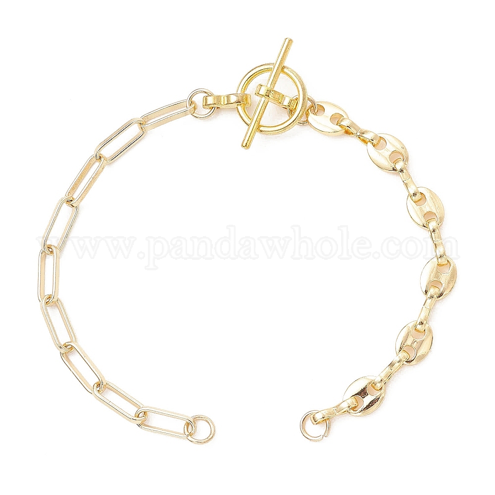 • Золотой Изготовление браслетов из латунных цепочек в виде кофейных зерен и цепочек из скрепок., Сплав с Переключить застежками, золотые, 6.93 дюйм (17.6 см)