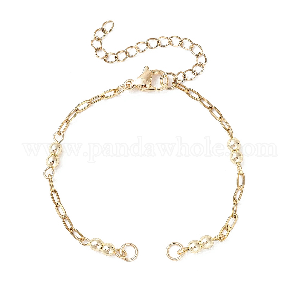 • Золотой 304 изготовление браслета-цепочки из нержавеющей стали со скрепками, с гальваническим покрытием из синтетических немагнитных гематитовых шариков, золотые, 6.02 дюйм (15.3 см)