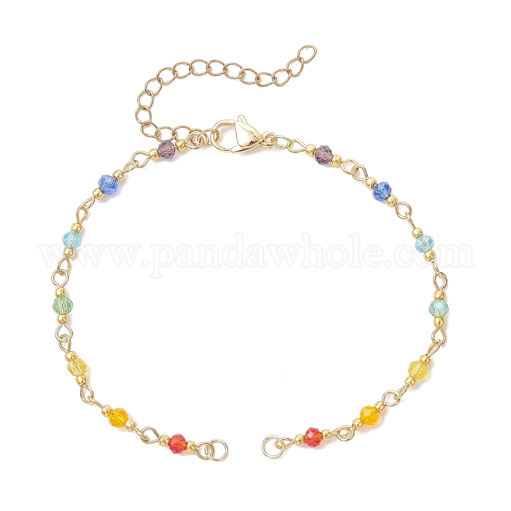 7-цветная граненая стеклянная цепочка-рондель ручной работы, браслет на шею, Изготовление браслетов с использованием 304 застежек-карабинов из нержавеющей стали, золотые