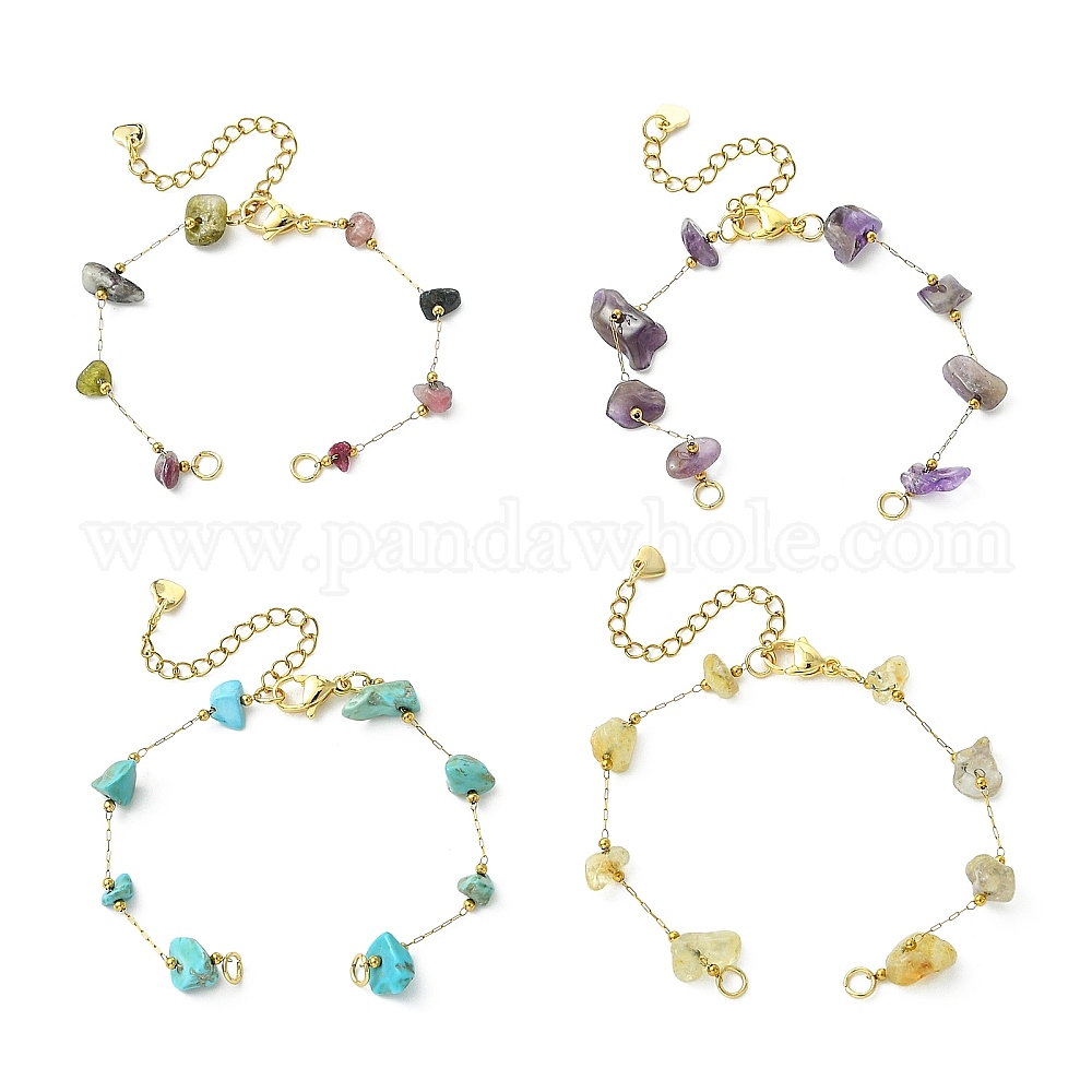 316 Изготовление браслетов из цепочек из хирургической нержавеющей стали с помощью скрепок, с бисером из натуральных смешанных драгоценных камней, ионное покрытие (ip), реальный 18 k позолоченный, смешанные окрашенные и неокрашенные