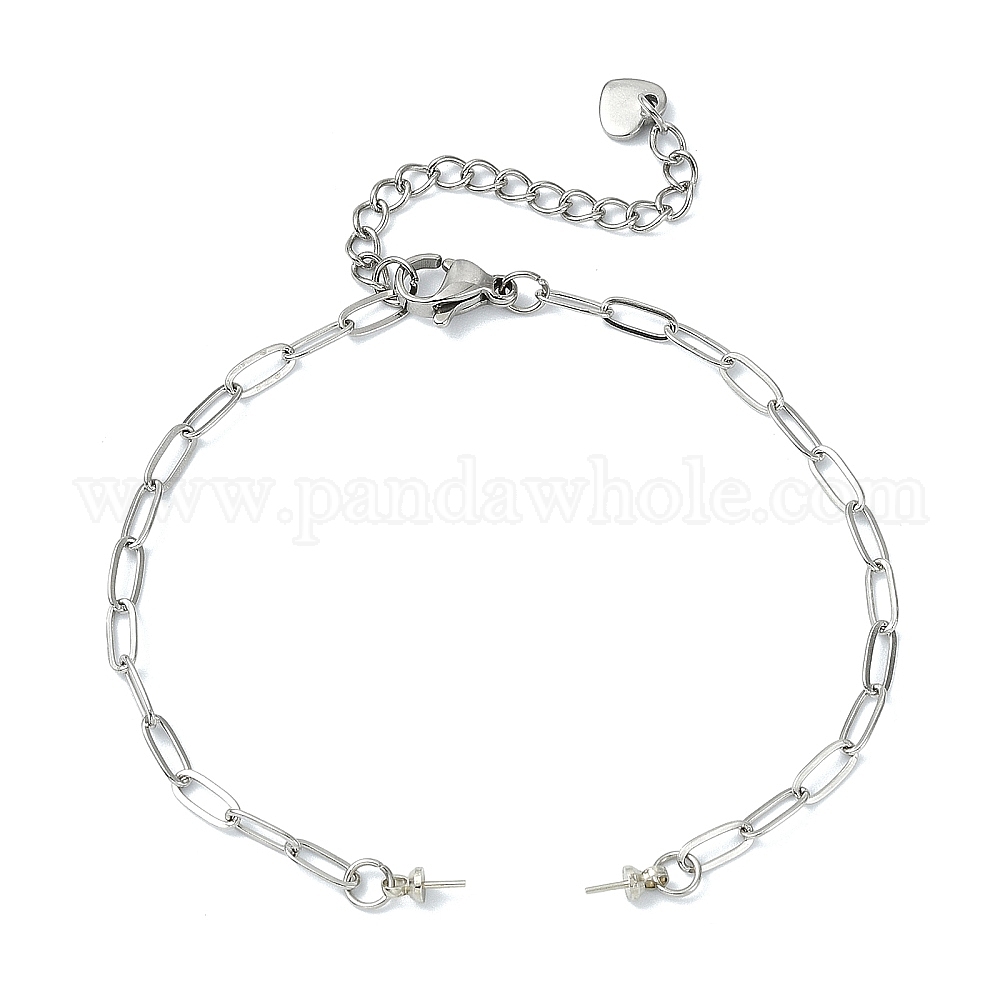 • Нержавеющая Сталь Цвет 304 изготовление браслета-цепочки из нержавеющей стали со скрепками, для бисера, не тускнеет, цвет нержавеющей стали, 6.77 дюйм (17.2 см), штифты : 0.5 мм