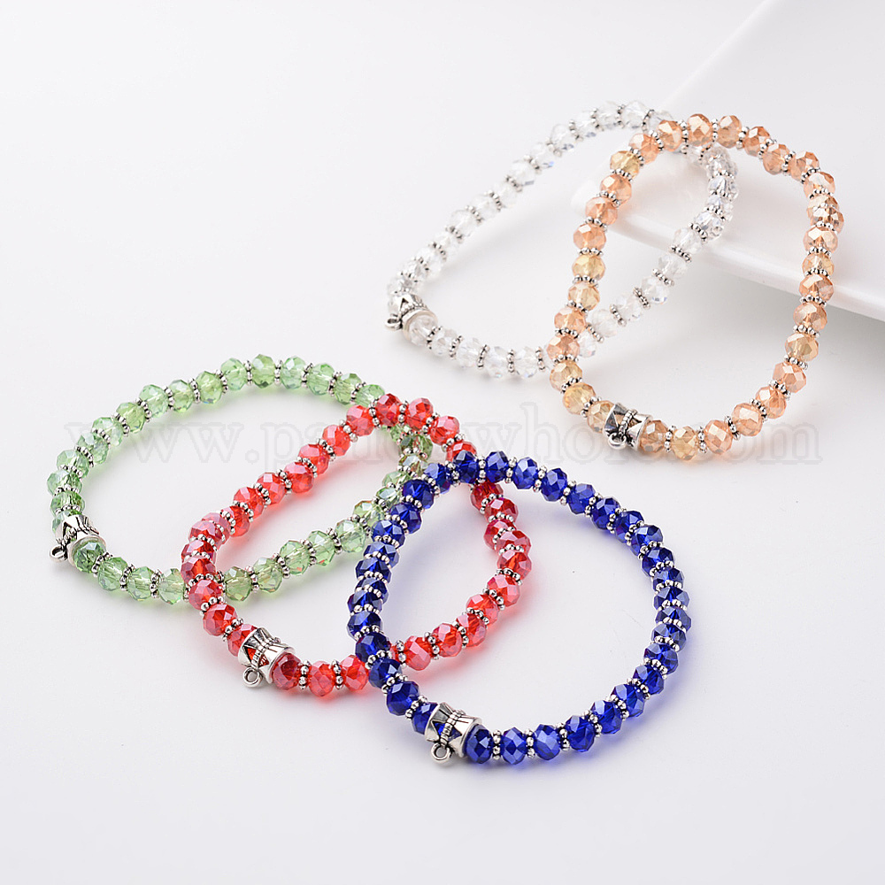 Стекла из бисера браслет решений, стрейч браслеты, с фурнитурой тибетского стиля, рондель, 53 мм