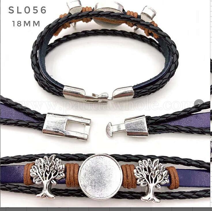 Имитационный браслет кожаный делать, с установкой кабошона из сплава и вощенными шнурами, дерево, античное серебро