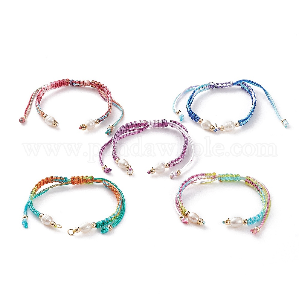 Регулируемый браслет из плетеного шнура из полиэстера, с латунной бисера, 304 прыжковые кольца из нержавеющей стали и бусины из пресноводного жемчуга.