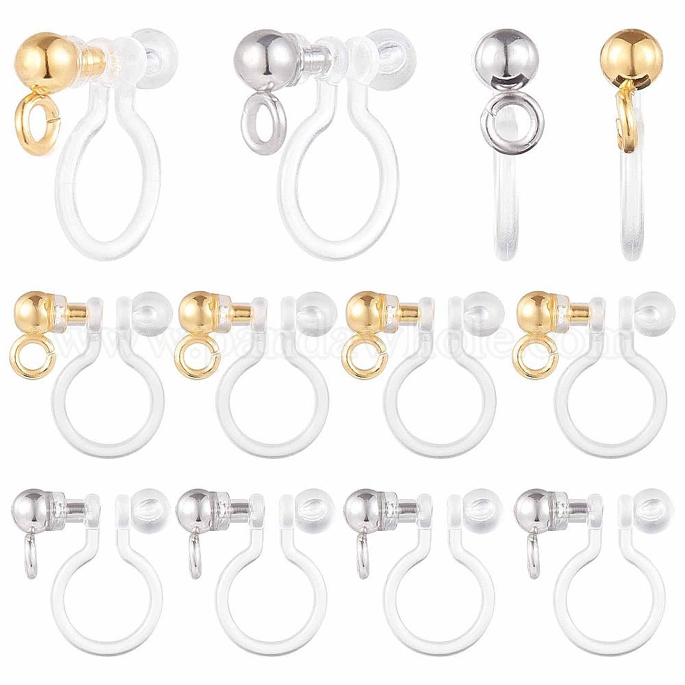 304 компонент серьги-клипсы из нержавеющей стали: 11x11x3мм, отверстие : 1.6 мм, 2 цветов, 20 шт / цвет, 40 шт;