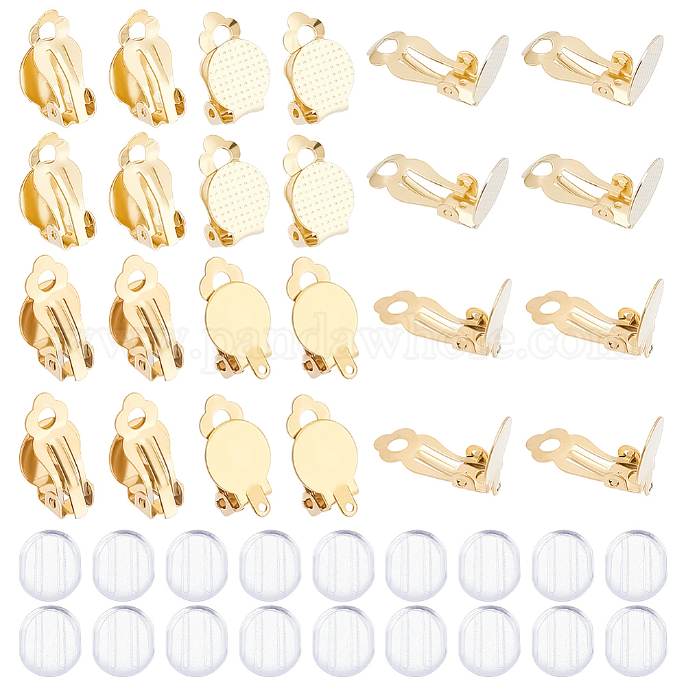 40шт. 2 размер 304 фурнитура для сережек-клипс из нержавеющей стали, плоская круглая клипса на подушечках для серег, с 40силиконовыми подушечками для серег