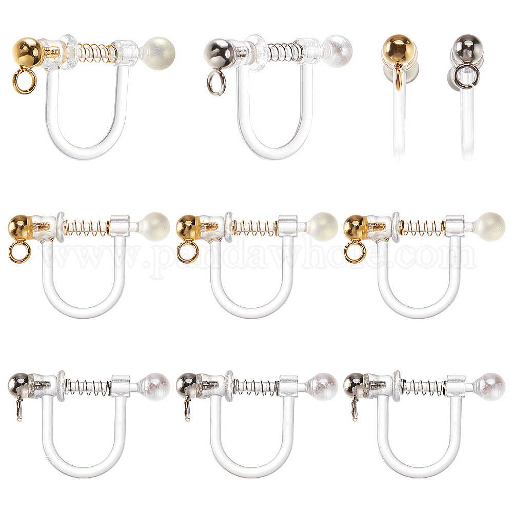 • Золотой & Цвет Нержавеющей Стали 20 шт. 2 цвета пластиковые серьги-клипсы, с жемчугом из ракушек и 316 наконечниками из хирургической нержавеющей стали и петлями, золотые и нержавеющая сталь цвет, 17.5x11.5x3 мм, отверстие : 1.4 мм, 10 шт / цвет