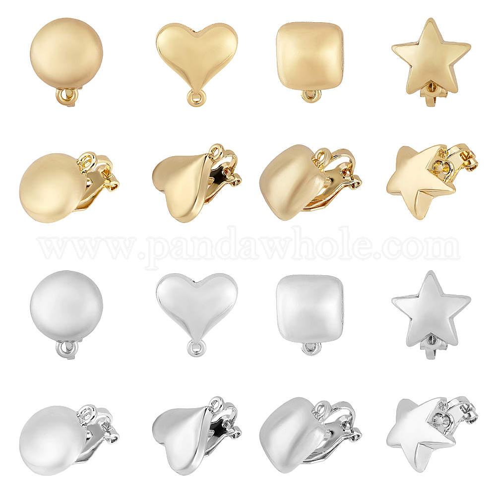 • Платиновый & Золотой 16шт 8 стиль сплав клипсы фурнитура, с горизонтальными петлями, квадратный и плоский круглый и сердце и звезда, платиной и золотом, 16~17x10~14x9.5~16 мм, отверстие : 1.2 мм, 2 шт / цвет