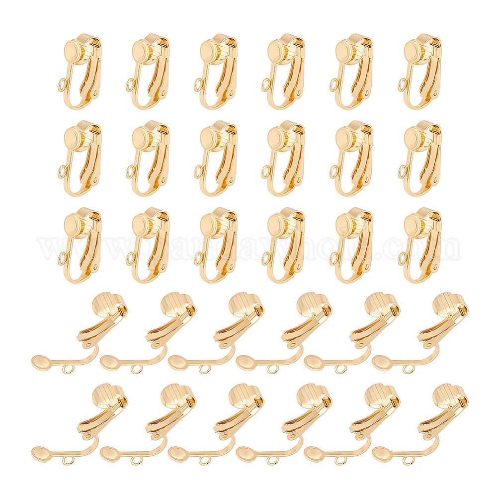 • Настоящее золото 18K 30шт. 304 фурнитура для сережек-клипс из нержавеющей стали, с петлей, для не проколотых ушей, реальный 18 k позолоченный, 16x12x7.5 мм, отверстие : 1.8 мм