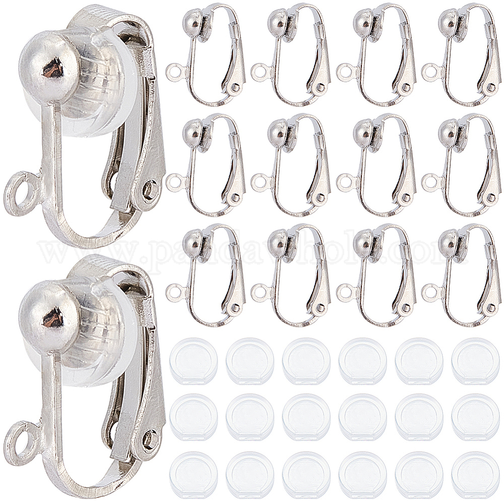 • Платина 36 латунные серьги-клипсы, с петлями и удобными пластиковыми подушечками 36шт., платина, 17x14x7 мм, отверстие : 1 мм