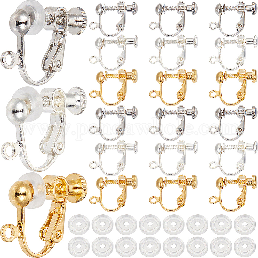36шт. 3 цвета латунный винт на клипсе выводы, спиральный зажим для ушей, с петлями, с удобными силиконовыми клипсами на подушечках серег 36шт.