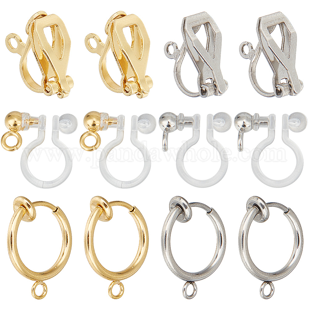 36 шт. 6 стили 304 фурнитура для сережек-клипс из нержавеющей стали, с петлями