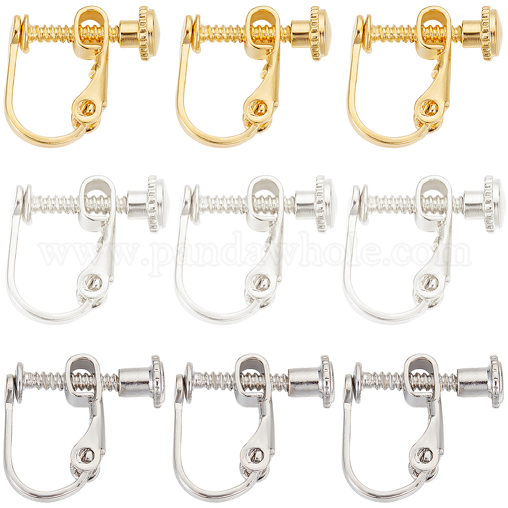 30шт. 3 цвета латунный винт на клипсе выводы, спиральный зажим для ушей, для не проколотых ушей (02QARB)