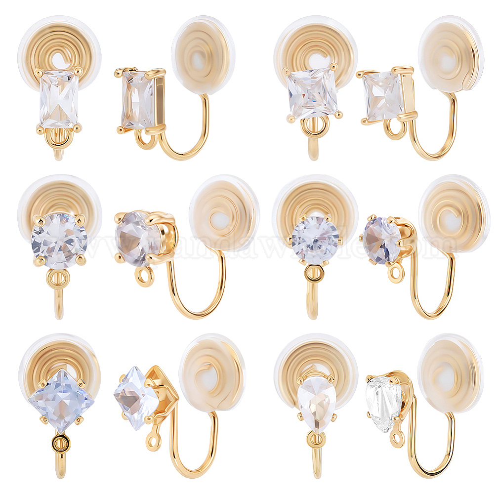 • Настоящее золото 18K 12шт. 6 стили латунные микропаве серьги-каффы с прозрачными кубическими циркониями, с петлей, долговечный, без никеля , разнообразные, реальный 18 k позолоченный, 15.5x9 мм, отверстие : 1.5 мм, 2 шт / стиль