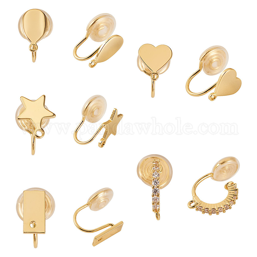 10шт. 5 стили латунные зажимные крепления, с петлей, долговечный, без никеля , разнообразные
