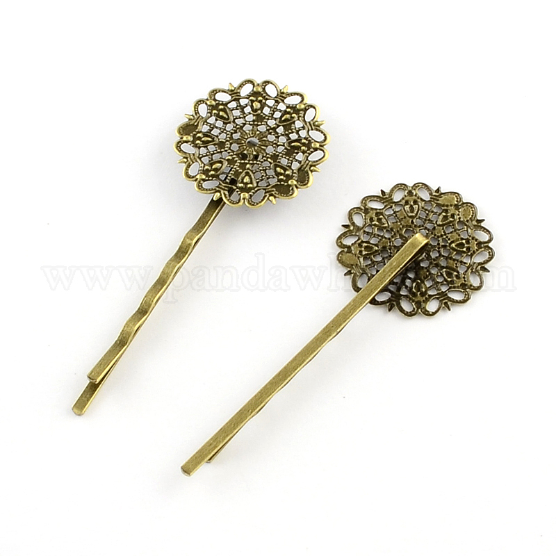 Филигрань цветочный лоток старинных волос железа заколка данные, лоток : 25x25 мм, 67x25 мм