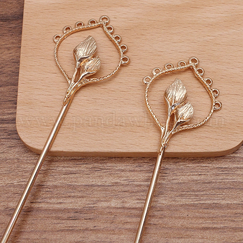 • Light Gold Железная фурнитура для шпильки, с цветком из сплава и петлями, золотой свет, 156x36x6 мм