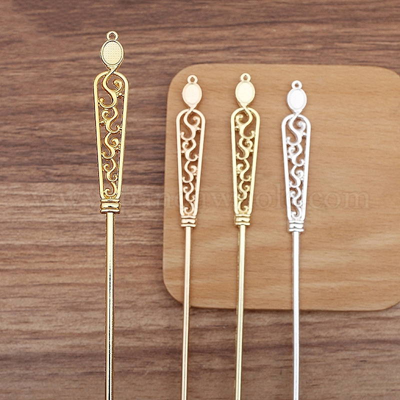 • Золотой Выводы из сплава для волос, оправа кабошонов, цветок, золотые, 182x12 мм, лоток : 6x8 мм