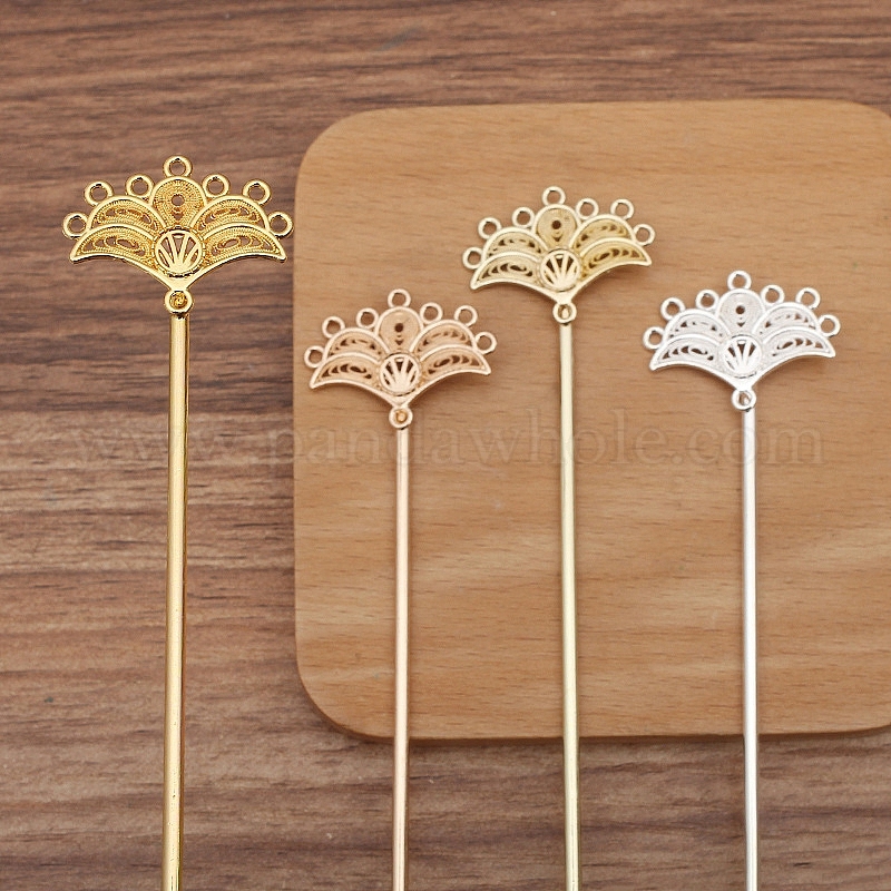 • Золотой Сплав палочки для волос фурнитура для женщин, вентилятор, золотые, 135 мм, вентилятор: 23x30 мм.